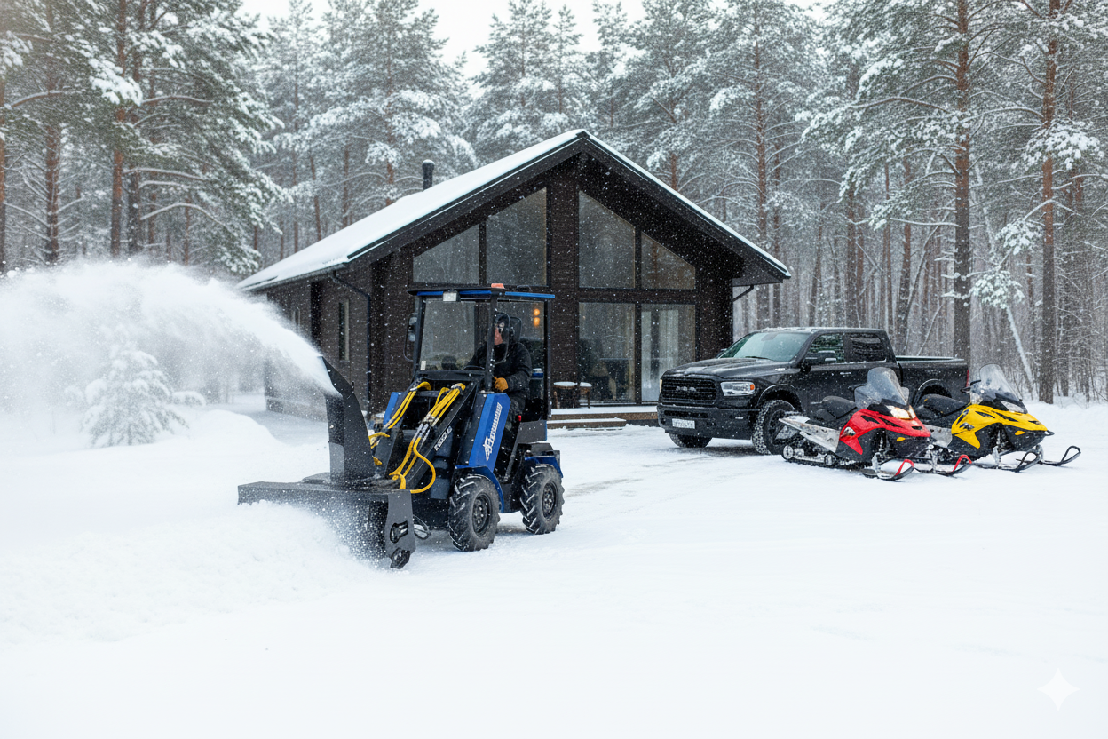 Навесное оборудование для Барнаулец 500 справится с любыми задачами — от уборки снега до перевозки грузов.